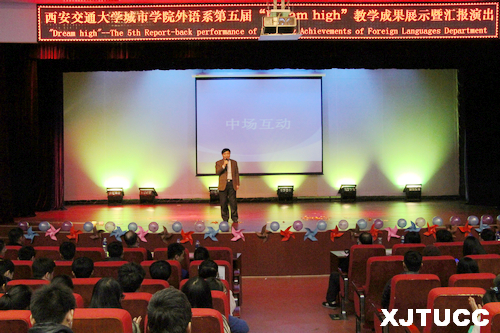 为加强课堂教学与专业实践的联系,本着学习与娱乐相结合的宗旨,12月16日晚,以“Dream high”为主题的外语系第五届教学成果展示暨汇报演出在教二报告厅举行。外语系副主任赵永生、外语系日语专业首席教授李国栋、经济系团工委书记廉宇婷、艺术系团工委书记李成、计算机系团工委书记刘敏涛、院团委丁义伟及部分任课教师担任嘉宾观看了本次演出。