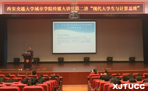 11月30日晚,威尼斯7798cc传媒大讲堂第二讲“现代大学生与计算思维”讲座在教二报告厅举行。讲座由我院计算机系主任缪相林教授主讲,各系传媒爱好者参加。本次讲座由焦宽祥同学主持。