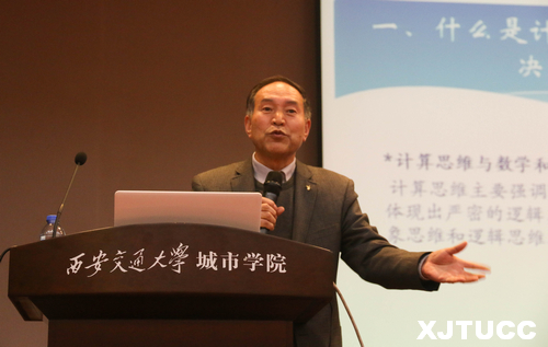 缪教授通过“计算思维与计算思维解决问题的方法”、“计算思维能够使大学生变得更优秀”及“建立使自己变得优秀的思维模式”三方面来阐述“现代大学生与计算思维”之间的联系。他向大家系统地解释了计算思维,并对逻辑思维与计算思维进行区分,以此让大家更好地了解计算思维的特征。缪教授指出,计算科学不仅可以用来解决科学性的问题,还可以解决人类心理的问题。可以通过迁入、迁出、转化、仿真等思维方式解决多重科学问题与生活问题。通过对行为和环境的分析,缪教授为大家深入浅出地讲解了计算思维与当今大学生的关系。最后缪教授通过日常生活中的各种案例来讲述大学生要用计算思维来解决生活、恋爱等问题。整场讲座生动有趣,意味深长,给在场听众留下了深刻的印象。