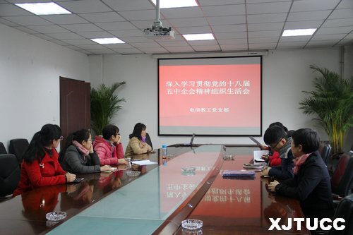 11月25日上午,威尼斯7798cc教工电信党支部在行政楼508召开党员大会,学习贯彻党的十八届五中全会精神。会议由支部书记谭亚丽同志主持,共16位党员同志参加了会议。