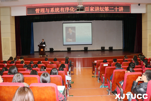 在主持人简单的介绍后,卫民堂教授即以“管理与系统有序化”为主题开始了讲座。卫民堂教授对“管理”一词做了简单解释,阐述管理的分类、长远性和必要性。他以系统的有序性和生命力进行了五方面的讲述:一是无序的系统毫无意义。例如杂乱无章的文字无价值,生活中为所欲为的行为无意义。二是有序乃系统之生命。卫民堂教授首先从人的概念出发,通过对婴儿、青年人、老年人三种不同年龄段人群生命力的比较,向同学们阐述生命机体的有序化体现。三是自发过程只趋向无序和混乱。对此,卫民堂教授指出,系统有序化不会自然产生,提高一个系统有序化最重要的方法就是管理,管理的意义旨在提高系统生命力。四是系统有序化是艰难困苦的。卫民堂教授用“水往高处流,而使水具有位能困难重重”等学生熟知且简单易懂的例子进行说明,同时提到中国现代管理改革不好拿捏,不好控制,教育管理弊端重重。五是管理是系统有序化的法宝。卫教授从“道、天、地、将、法”五个要点进行阐述,将古时道理通译,来进一步解释管理学在生活、工作及社会中的应用。卫民堂教授所呈现的大量事例和幽默的讲课风格,让同学们很好的理解了思想认同,关系和谐,步调一致到人、物、行为有序的转变。
