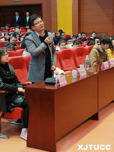 在互动环节,在场师生都积极向卫民堂教授提问,卫老师都一一进行了细致而深入的解答。关于“如何有序管理自己将优点最大化地体现”这一问题,卫老师提出了三点意见:首先,大学生应定期进行反省;再者,要有明确的自我规划、职业规划,最重要的是做人规划;第三,了解专业学科的机会、发展空间、技术方向,多进行社会实践,不断提高自身素质与能力。院团委书记曹嘉伟老师也向卫民堂教授提出“团学干部如何管理并化解理想与现实的冲突”问题,卫老师举例并细致道出自己的观点,他讲到生活中文学作品源于生活高于生活,即理想以现实为基础,虽然理想不是现实,但努力可能达到。对于个人达到理想是概率而非必然,所以人必须有追求,人最基本的理想是如何做一个对家庭社会有用的人,而这一理想的完成便是理想与现实的纽带。
