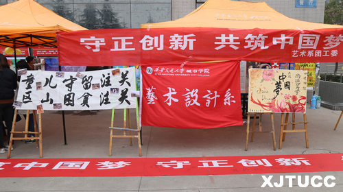 活动中,以“尚德笃学,筑中国梦,守正创新,修青年志”为标语的横幅,让过往的师生写下自己的梦,激励大家能够通过不懈的努力早日实现自己的梦想。活动以照片剪影的方式展示了艺术系各个团支部紧紧围绕以“尚德笃学,共筑美好中国梦”为主题开展的丰富多彩的活动,大力宣传活动主题,让更多的学生参与进来,为实现美好中国梦贡献自己的力量。活动充分发挥专业优势,展示了以“美好中国梦”为主题的书法、绘画、立体构成创作作品,更加坚定了我系团员青年“共筑美好中国梦”的信念。同时,艺术系“艺愿”志愿服务队开展向四川贫困山区捐赠衣物活动,共募捐到衣物上百件,帮助那里的学生度过寒冷的冬季,为共同实现美好中国梦而努力。此次活动吸引了我院广大师生的驻足观看。