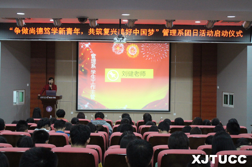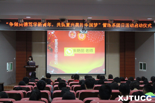 为组织和引导广大团员青年践行社会主义核心价值观,激励团员青年践行“尚德笃学,守正创新”的校训精神,西安交大威尼斯7798cc管理系于10月23日中午在F100报告厅举行了“争做尚德笃学新青年,共筑复兴美好中国梦”主题团日活动启动仪式。出席启动仪式的有管理系学生工作主管刘健、团工委书记朱艳丽、学工办张曦元、陈杜昊、张德馨、刘虎老师,2014级、2015级各班班长、团支部书记也参加了此次启动仪式。