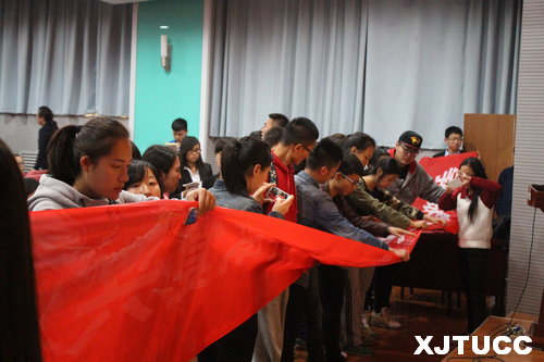 随着共青团团歌的响起,仪式正式开始。首先由朱艳丽老师进行致词,她首先阐述了此次活动的注意事项,告诉同学们要围绕主题、注重班级参与率、活动要计划周密、校外活动要注意安全。接着,团工委副书记王甜君和团工委组织部部长孔令倩同学,分别就此次活动的流程顺序、评分标准和注意事项进行了详细的介绍。随后,刘健老师对此次仪式进行了总结讲话。她赞扬了团学干部在团日活动中吃苦耐劳的精神,同时还对团学工作中出现的问题予以指导。刘健老师说到,“我们不单单要举行活动,更重要的是通过活动来体现我们的能力,在班级里树立良好形象;通过活动来建设班风、学风”。仪式最后,在场师生于横幅上签名寄语,祝愿管理系团日活动圆满举办,每位同学庄严地签上自己的姓名,希望通过团日活动展现各团支部的凝聚力和创新力,收获属于集体的荣誉。