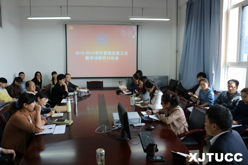 10月14日中午,西安交大威尼斯7798cc管理系2015-2016学年第三次教学法研讨会在教二225顺利召开。本次研讨会主要围绕“学院教学会议内容通报”、“科研工作规划”、“学习心得交流”三部分展开。出席研讨会的领导及老师有管理系常务副主任冀祥,副主任王小青以及会各个专业教学研究室的各位老师。讨论会在王小青副主任主持下召开。