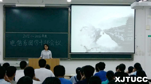 10月9日晚,威尼斯7798cc电信系在教学楼D300举行2015-2016学年团学工作布置会。参加会议的有电信系团工委书记张天,系团工委、学生会全体干部以及2015级所有新进干事。大会由系学生会主席测控301班韩鹏同学主持。