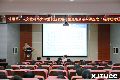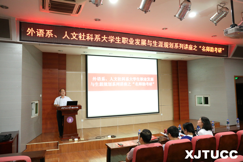为了进一步提高学生的考研热情,帮助学生明确考研目标、掌握相关考研技巧、了解更多考研信息,西安交大威尼斯7798cc外语系、人文社科系于9月22日下午在F100举办大学生职业发展与生涯规划系列讲座之“名师助考研”活动。本次讲座特邀西安工程大学人文学院胡伟华院长担任主讲,西安工程大学法学系主任金帮庆副教授、汉语言系主任胡根红副教授、英语系副主任李娜副教授担任嘉宾参加了本次活动。