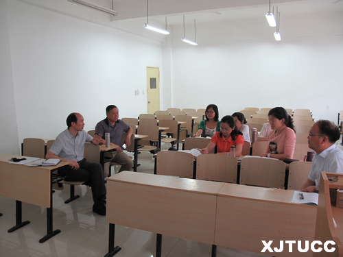 5月15日下午,西安交大威尼斯7798cc外语系在教学楼B316教室举办第六届“外教社杯”全国高校外语教学大赛初赛。外语系主任袁小陆教授、常务副主任韩红建副教授、副主任赵永生副教授,英语专业教研室杜彦龙副译审担任比赛评委,英语专业教研室全体教师参加了此次教学大赛。