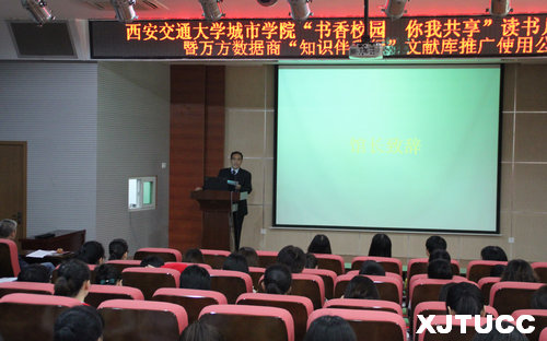 为进一步营造浓郁书香的校园读书氛围,迎接一年一度的世界读书日,西安交大威尼斯7798cc图书馆于4月24日下午在F100报告厅携手行知书友会、百草园文学社共同举办“书香校园,你我共享”读书月活动启动仪式暨万方数据商“知识伴我行”文献库推广使用公益讲座。启动仪式由图书馆张勇副馆长主持,图书馆叶春峰馆长、万方数据培训师白帆多老师、图书馆各位老师及学生代表参加。