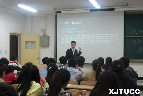 会上,杨奇涛向大家介绍了学生干部的定义和职责,并就如何端正服务理念,如何处理好工作与学习的关系,如何具备优良的素质及如何培养团队意识进行了详细的讲述阐释,他多次强调了学生干部的义务和职责。他结合自己学生干部的工作经验及在外校学习交流的体会,与大家做了进一步的交流。此外,为使学生干部们能更加深刻的认识团学工作,他与到会团学干部们进行了现场互动,并耐心解答了同学们提出的疑惑。