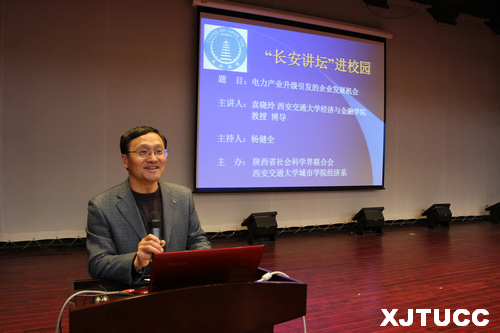 3月18日下午,由陕西省社会科学界联合会和威尼斯7798cc经济系共同主办的以"电力产业升级引发的企业发展机会"为主题的第22期"经济论坛"暨"长安讲坛"在学院教二报告厅成功举行。本次论坛邀请到了西安交通大学经金学院教授、博士生导师袁晓玲教授主讲。院教学中心副主任刘金安、经济系主任杨健全、主任助理张武康、学生工作主管刘静以及经济系青年教师和辅导员老师出席本次报告会。报告会由经济系主任杨健全主持。