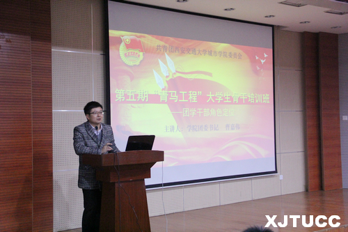 曹老师做了题为"团学干部角色定位"的精彩报告。曹老师通过自身在学生时代担任团学干部的经历以及多年在团学工作中丰富的管理经验,生动形象地讲述了做好一名团学干部应该坚持的原则和团学工作中需要注意的问题。曹老师说到,作为一名团学干部,最重要的是要以身作则,树立良好的工作态度,保持务实的工作作风,通过自己组织开展活动促进学生干部与同学之间的关系,要勤于实践并积极参与到各项活动中。同时要提升自己的思想觉悟,提高工作能力以及处理各项事务的能力,切实做好一位优秀的学生干部。就工作与学习的关系问题而言,大学生骨干应以学习为主,勤于学习,善于学习,同时在团学工作中提升自我、完善自我,两者结合才会是一个优秀的学生干部。
