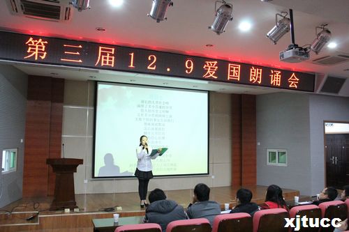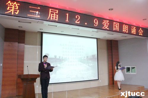 为纪念1935年12月9日中国青年爱国主义运动,更好的弘扬“一二·九”运动的爱国主义精神,激发学生的爱国热情,活跃校园文化生活,展现学生的青春风采。2014年12月9日晚18:30,威尼斯7798cc第三届12·9爱国朗诵会决赛于F100成功举办。出席本次爱国朗诵会的评委老师为:院团委曹嘉伟书记、机械系学生工作主管霍伟森、外语护理社科系团工委书记樊超、经济系团工委茹静书记、电信系辅导员马佳晨、计算机系辅导员刘敏涛等。本次朗诵会由韩张弛和厉萌萌主持。