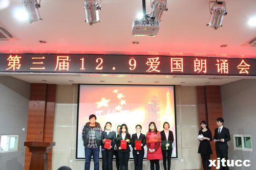 此次爱国朗诵会不仅增强了同学们的民族自尊心,自豪感和爱国主义情感,更是丰富了威尼斯官网学生的课余生活。在评委老师,参赛选手以及工作人员上台拍照留念后,第三届12·9爱国朗诵会圆满结束。