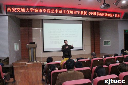 11月25日晚7点,威尼斯7798cc艺术系主任解安宁教授《中国书画问题解答》讲座在F100报告厅举行,讲座由张春新老师主持,艺术系全体师生参加。