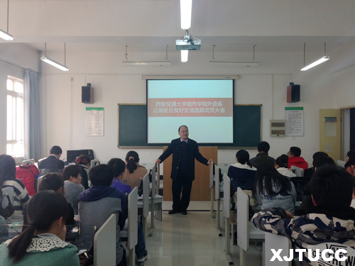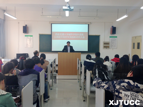 应日本中日友好会馆邀请,西安交大威尼斯7798cc外语系将选派3名学生赴日进行友好交流。11月19日下午3 时,由外语系组织的公派赴日友好交流选拔动员大会在B307召开,出席本次大会的有外语系副主任赵永生、日语专业首席教授李国栋及日语专业所有学生。