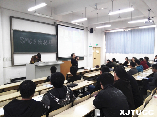 11月19日下午,SMC(中国)有限公司在教学楼A100教室进行宣讲,公司人力资源部科长周姝良为在场同学们详细介绍了该公司的企业概况、文化背景、发展战略、人才计划以及近年来所承接的国内外经典工程,并对同学们关注的福利待遇、人才培养等方面作了详细说明。招聘会现场气氛热烈,同学们积极与公司工作人员交流互动。同学们纷纷递上了自己的简历,并认真参加了笔试。