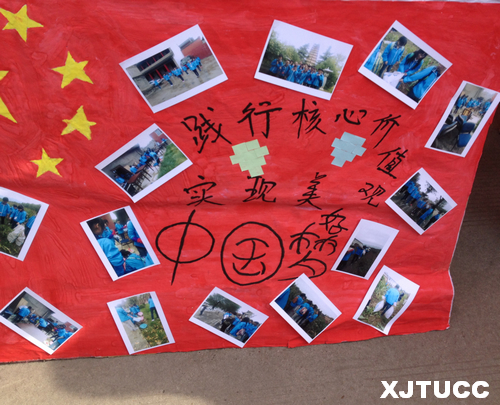 本次活动得到了外语系全体学生的积极响应。活动中,各班级将开展团日活动时的精彩瞬间制作成展板展示给大家,有的班级为公园做义工;有的班级组织志愿小分队维持公交站的乘车秩序;有的班级以制作调查问卷及视频采访的方式向中小学学生宣传社会主义核心价值观。通过本次系列的班级活动最大限度地调动和发挥了外语系学生的积极性、主动性和创造性,使社会主义核心价值观真正融入到广大学生的生活与精神世界中。最后,大家纷纷在横幅上签名,并写下对伟大祖国的美好祝愿,以表达大家对祖国的热爱之情。