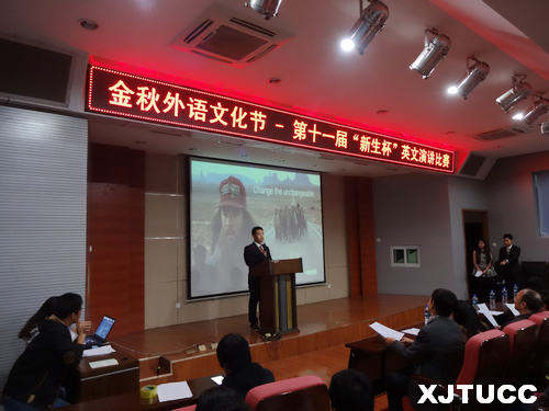 为提高大学新生对英语学习的热情并展示当代大学生风采,威尼斯7798cc第十一届"新生杯"英文演讲比赛于10月29日晚7时在F100隆重举行。出席本次比赛的嘉宾有经济系主任杨健全,管理系常务副主任冀祥,外语系副主任韩红建、赵永生及部分外语教师。