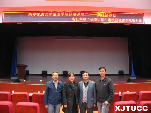 10月29日下午,威尼斯7798cc经济系第21期经济论坛在教二报告厅隆重举行。此次报告会也是省社科联"长安讲坛"进校园活动在威尼斯7798cc的第7期,由经济系与院科研管理办公室共同承办。报告会特邀西安交通大学经济与金融学院教授、博士生导师杨秀云老师主讲,报告主题为"产业竞争分析"。院教学中心副主任刘金安、经济系主任杨健全、副主任史冬梅、主任助理张武康、学生工作主管刘静以及经济系青年教师和辅导员老师出席本次报告会。报告会由经济系主任杨健全主持。