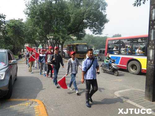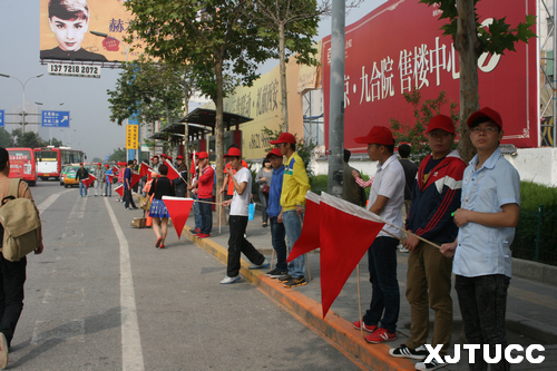 9月20日上午,由机械工程系徐泳铎老师带队,系团学会学生干部及志愿者60人分两队分别前往城北客运站和环城北路进行志愿活动。他们头戴小红帽、手持小红旗维持候车秩序,劝阻和疏散占用公交车道的违规车辆。志愿者们始终保持微笑、秉承着“我奉献我快乐”的精神,以实际行动告诉大家,缓堵保畅要靠大家积极行动起来,做自觉遵守交通规则的文明人。活动过程中西安日报、西安电视台、西安交通广播等媒体前来采访并对本次活动进行了报道。