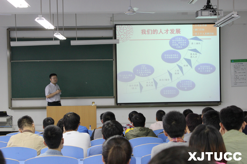 首先董经理向2011级机械工程系前来应聘的大四学生进行宣讲,他简明的介绍了陕西太古可口可乐公司的性质及现状,并通过视频展示了企业的发展历程和企业文化。之后,董经理通过个人的人生经历向在座的大学生求职者们阐释了如何应对工作中的挑战,并对机械工程系的毕业生们寄予了殷切的希冀。