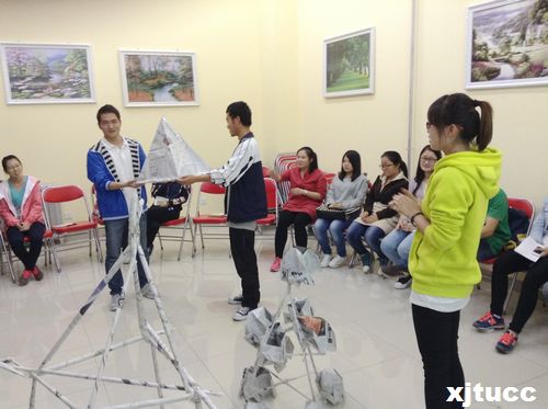 活动以“我的自画像”为导入,围绕“我的梦想”这一主题,同学们拿起画笔,以形态各异的画面展示了自己的美好愿望与梦想。杨老师引领大家完成对自我的深入认识与探索,身体力行,将梦想照进现实。之后,活动进入到“搭建金字塔”的环节,杨老师将全体学生分成三组,在非言语沟通的条件下搭建各组的金字塔。分组后,同学们积极思考,默契配合,逐渐找到了有效的非言语沟通方式,在团队合作下分别搭建了“七希塔”、“埃菲尔塔”、“梦幻城堡”等各具特色的金字塔。在展示环节中,同学们分享了团队中领导者的重要性以及团队协作的快乐与收获。最后,在“拉手祝福”的活动中,各位同学手拉手,整理心绪,感悟自我,表达了身为助管员的感受,传递了对助管团工作的珍惜与热爱,坚信通过彼此的努力,学生之家定会成为学生宿舍的温馨一隅。