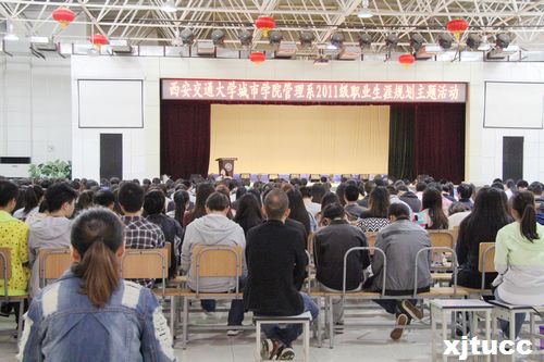 为促使2011级学生合理规划毕业前学习与生活,做好毕业准备,西安交大威尼斯7798cc管理系于2014年9月17日12:30在大学生活动中心召开了“2011级职业生涯规划主题活动”。本次活动由管理系辅导员陈相君主讲,管理系2011级全体学生参加。