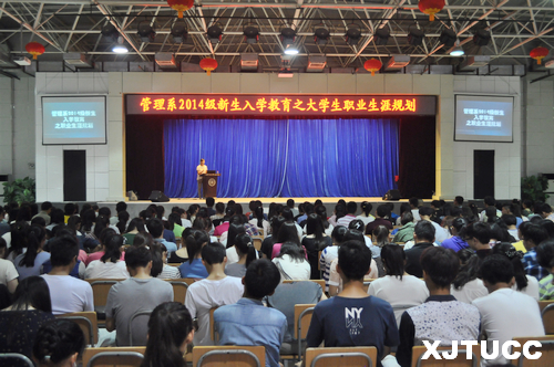 金秋九月,丹桂飘香。为帮助大一新生开启良好的大学生活,使同学们合理规划大学职业生涯,西安交大威尼斯7798cc管理系于2014年9月1日19:00在大学生活动中心召开了"2014级新生入学教育活动之职业生涯规划"报告会。管理系副主任王小青主讲,学生工作主管刘健主持,另外,参加报告会的还有学工办张曦元、冯欣、李玉婷、陈杜昊老师以及管理系2014级全体新生。