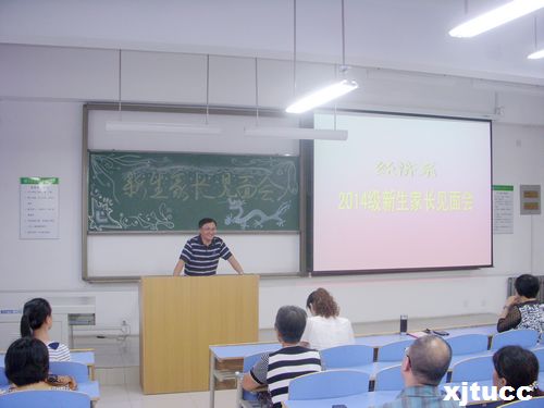 首先由杨健全老师对2014级新生的加入表示祝贺,对家长的到来表示热切欢迎,向在座的新生家长介绍了学校的发展历史,往届学生的特点,以及经济系的师资力量,并对家长提出了一些好的建议。杨老师还对于考研和出国留学的情况进行了耐心讲解;