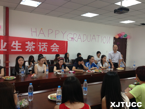 茶话会在轻松、热烈的气氛中进行。毕业生们畅谈自己大学学习、生活的感受,并感谢学院与老师们四年来的教诲与关怀。会上播放了代课教师精心录制的寄语视频,以表达对即将离校的2014届毕业生即难舍又欣慰的情感,并希望大家珍藏一起拥有的四年美好回忆,遇到困难老师们永远是大家的求助对象。毕业生们从中回顾着大学四年师生间的点点滴滴,不禁感慨并流下激动的泪水。接着,赵永生、韩红建两位老师分别讲话发言,首先对大家能够顺利毕业表示祝贺,同时也指出大学生活在人生中起到的重要作用,希望大家能够在今后的学习和工作中不断激励自己,学会学习、学会合作、学会审美,创造辉煌的成绩回报社会、家人和母校。最后,学弟学妹们也送来自己的祝福,以一首《永远的画面》祝愿各位学长学姐毕业快乐,活出属于自己的精彩人生。