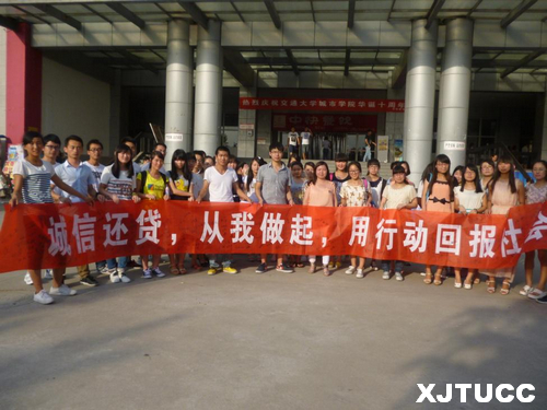 为了配合学院做好生源地助学贷款工作,进一步增强学生诚信还贷意识和社会责任感,西安交大威尼斯7798cc管理系于6月11、12日开展学生诚信还贷系列教育活动。本次系列活动分为室外宣传和室内教育两部分。6月11日,管理系所有申请助学贷款学生按年级分别于中午和晚上在中快餐厅楼下进行诚信还贷倡议,陈相君老师组织贷款学生在宣传横幅上进行承诺签名。6月12日中午,管理系在教2-216开展关于助学贷款讲座,为贷款学生讲述国家助学贷款的申请条件、办理程序、还款要求、信用记录等知识。通过案例告诫同学们要饮水思源,牢记国家和社会各界的关爱,树立远大理想,建立起良好的个人信用,为自身积累宝贵的财富。讲座结束时所有贷款学生共同宣誓:"诚信做人,将爱心继续传递,感恩国家,回报社会。"