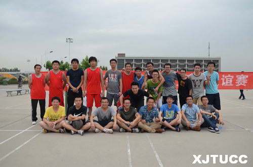 中午12时,大会结束后,2014届毕业生代表与教职工代表在中心篮球场进行了篮球友谊赛。