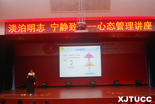 为推进学院对家庭经济特困学生的帮扶教育,引导学生树立积极心态,提高健康心理素质,5月27至28日,西安交大威尼斯7798cc学生服务中心在F100和教二报告厅分别举办"淡泊明志 宁静致远--心态管理"讲座。此次讲座由学生服务中心张福全老师主持,杨梅老师主讲。