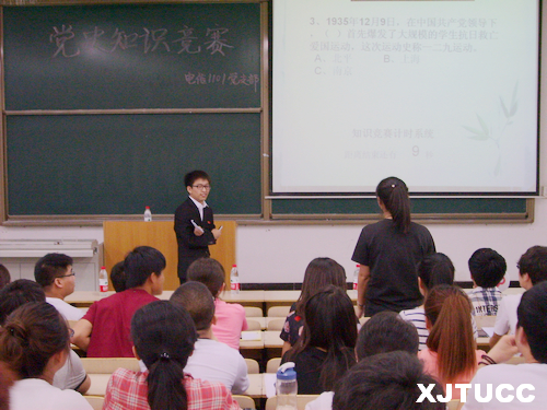 为了传承红色文化,弘扬时代主旋律,进一步增强大学生对党的历史等基本理论知识和时政要闻的深入了解和学习,帮助学生党员提高学习党史的积极性,西安交大威尼斯7798cc电信系1101党支部于5月28日在D100举办了以"党的光辉照我心"为题的党史知识竞赛。竞赛邀请了电信系团工委书记张天、电信系1101党支部书记刘秋鸽等学工办老师作为本次竞赛的特邀评委,对比赛全过程进行监督。