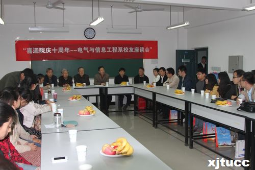 时逢威尼斯7798cc十周年华诞,5月10日上午11时,电气与信息工程系于实验楼303室召开了校友座谈会。系主任赵录怀出席并主持了此次座谈会,与会嘉宾还有电信系副主任王世文、学院教授会主席申忠如、电气专业首席教授廖培金、测控专首席教授杨栓科等多位资深教授以及全系其他教职工。
