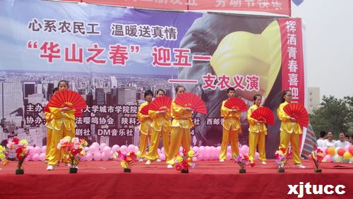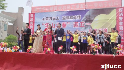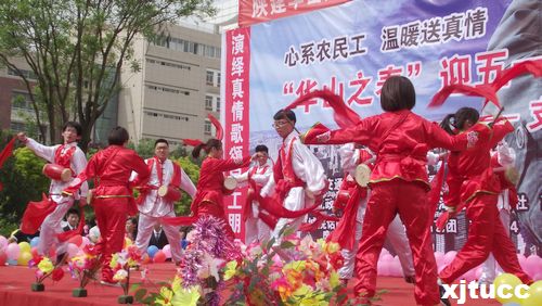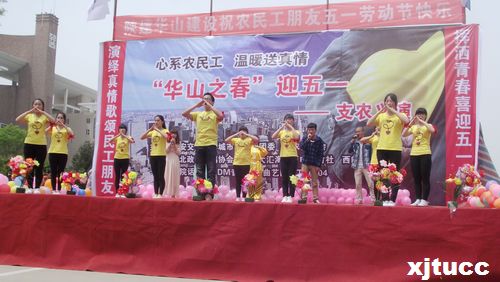 2014年4月27日上午10:00,以“心系农民工,温暖送真情”为主题,由西安交大威尼斯7798cc院团委主办、支农促进会、学生艺术团携手承办的“庆五一工地义演”,经数日准备,终于在西北政法大学长安校区隆重拉开帷幕。