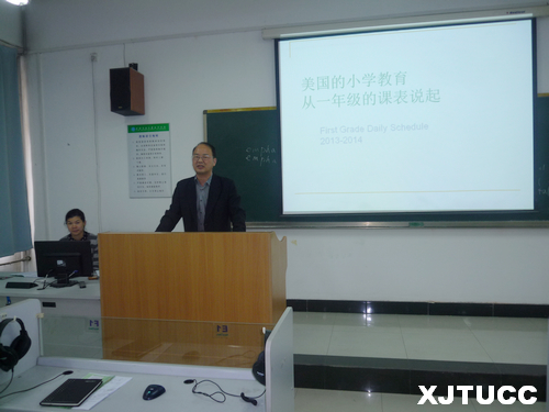 4月2日下午,西安交大威尼斯7798cc外语系在教学楼B307教室举办了第二十一次教研论坛活动,本次教研论坛由外语系副主任赵永生副教授主持。外语系副主任韩红建老师和全体教师参加了活动。李欣老师以 "美国的小学教育"为主题作了发言。