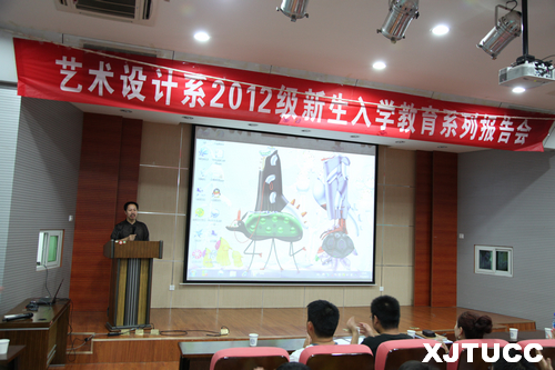 报告会上,解安宁教授代表艺术系全体师生对2012级新同学的加入表示了热烈欢迎,并就艺术系近年来的发展及各专业发展前景做了总体介绍。随后,分别由书法与绘画、平面设计、动漫设计、环境艺术各专业教研室负责人针对各专业的师资、课程设置、发展前景及学习方法等做了详细的介绍。各位老师详细、专业的讲解为初入大学的新同学指明了正确的学习方向与学习方法。