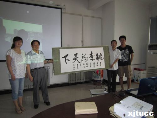 在座谈会中,毕业生们畅所欲言,氛围十分活跃。同学们畅谈四年的大学生活感触,说出了自己心中的遗憾,表达了自己对电信系的感恩之情,并对电信系以及学院的未来发展提出了自己的设想。同时三位教授也对毕业生提出了殷切期望,他们希望毕业生能在离校前认真总结大学四年的生活和学习,并要求每位毕业生提前对人生进行规划、总结和思考,不断地学习;同时,他们还鼓励毕业生对学院目前的教学、管理、服务等各项工作提出意见和建议。最后,作为2012毕业生代表的乔高林、茹静两位同学向电信系赠送了“桃李满天下”的书法作品,并送上对母校最诚挚的祝福。