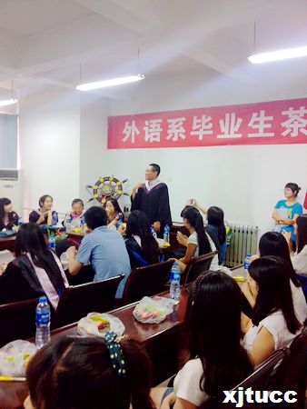6月11日上午在活动中心四楼东402外语系举行了08级毕业生茶话会。参加此次茶话会的有外语系副系主任赵永生老师,外语系专业课教师杜彦龙老师、张慧老师、胡婷老师,外语系08级辅导员蒋芳芳老师以及外语系08级全体毕业生。