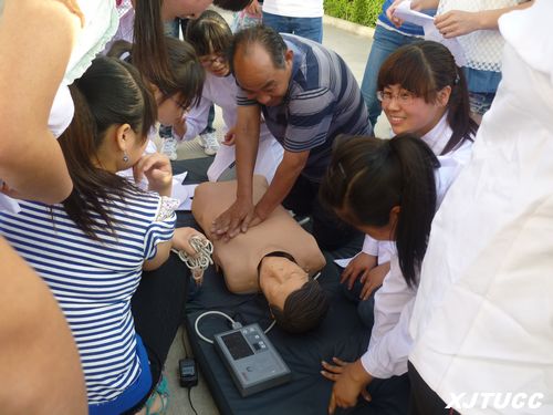 此次活动主要分为三个部分,为期五天,活动的口号为“关爱生命,健康随行”。5月11日下午,护理系班主任王梅芳老师为医疗小组的同学做了“心肺复苏”的相关培训,在王老师细心指导下,同学们很快掌握了急救的方法,并希望通过自己的努力可以将此类知识宣传出去;5月12日19:00—21:00,护理系在A300教室面向全院师生放映了电影“一公升的眼泪”,借这部电影来呼吁全院师生珍爱生命,学会生活;5月14日下午,护理系同学在中快餐厅门口广场上为全院师生进行“心肺复苏”的培训及相关知识的宣传讲解。本次心肺复苏的讲解培训活动为期2天。活动开始,大家按照分组分别进行发放保健知识宣传单、横幅签名以及心肺复苏现场抢救演示。活动中,医疗小组的队员们就“心肺复苏”为大家做了详细的讲解,指导其在人体模型上进行实际操作演练。在讲解的同时还根据自己所学的专业课知识认真解答了同学们的相关问题和疑惑。全院广大师生积极参与,纷纷在横幅上签名并认真学习心肺复苏的技能,同学们表示“这是一个非常有意义的活动,让我们学到很重要的保健预防和急救知识”,“可以多开展一些相关方面的活动,拓展医学常识,帮助大家更好地关爱自己和他人”。