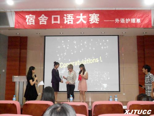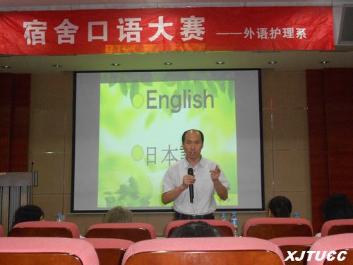为全面营造校园外语文化学习氛围,进一步提高大学生外语口语表达能力,激发大学生外语学习的兴趣,5月14日晚,西安交大威尼斯7798cc外语、护理系在F100成功举办了“第二届宿舍口语大赛”。此次比赛是校园外语文化周持续深入开展的又一个活动,本次比赛以宿舍为单位,共有来自外语系英语和日语两个专业的10个小组参赛。担任此次大赛的评委有外语护理系副系主任韩红建老师,外教Susan老师,外语系日语专业课教师曲向超老师以及外语、护理系学工办全体老师。