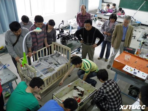 活动中,由学生对“节能减排屋顶吸尘器”、“机械蝎子”、“强手倒豆机”、“婴童摇篮车”四项参赛作品进行讲解,并对其所有功能和运动进行演示。学院副院长崔杜武、教学服务中心副主任王毅、系领导和指导教师分别对学生的作品进行了点评。