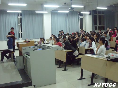 讲座伊始,张老师以幽默、热情的谈吐赢得了在场学生的喜爱,她从脸型、妆容、衣着、发型等方面一一讲解了如何提升自我形象和气质。随着讲座的深入进行,在场的学生们无不跟着老师的步调,积极参与互动。讲解发型期间更有同学主动上前配合老师做各种示范,以便其他同学更直观理解。在整个讲座期间,张老师爽朗的笑声感染着每一位同学,使得此次讲座在轻松而又欢快的掌声中完美落幕。讲座结束后,还有很多同学意犹未尽继续向张老师请教相关的问题。