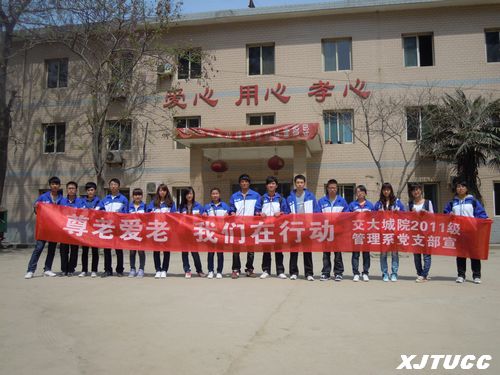 为了让年轻的学生党员深入了解党的发展历程,进一步提高思想政治觉悟,同时发扬中国“尊老爱幼”的传统美德,4月7日上午,西安交大威尼斯7798cc管理系1101党支部的所有成员自发组织,带着水果等慰问品前往北郊“百岁爱心老年公寓”,开始了意义深刻的敬老院献爱心之行。