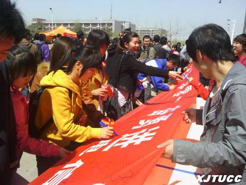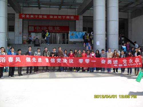 为了使威尼斯官网学生更多的了解党的基本理论知识,让更多的同学能在思想上与时俱进,4月1日中午,电信系1001党支部在食堂一楼门前进行了党的知识宣传活动。党员们把印有党的理论知识的卡片热情地分发给路过的同学。他们的笑容感染了很多人,很多同学都积极踊跃地参与其中,并且在横幅上签名表示支持。卡片虽小,却让同学们了解了很多党的理论知识,与党的距离更近了一步。