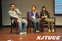 在第二个环节中,同学们通过现场提问、短信交流、微博、人人网留言的方式与学长进行交流,学长们就大家提出的学习工作时间的协调、考研专业和复习班的选择、时间的管理、自身各方面素质的培养等方面问题一一作了讲解。整个过程提问环节紧凑融洽,现场气氛热烈活泼。