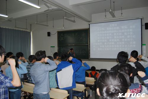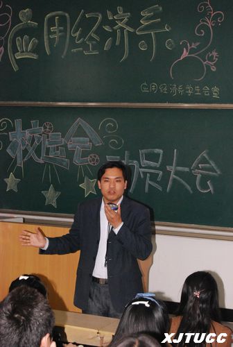 首先由应用经济系学工办负责人陈涛老师讲话。陈老师谈到,此次运动会学院从领导到团工委都非常重视,从各项筹备工作、运动员选拔到各项经费支持、后勤保障、奖励措施等各方面都非常关心,也很支持。学生会特别是体育部的同学克服了各种困难完成了运动员的选拔和训练计划的拟定工作。希望大家在接下来的几天全力投入运动会的训练中,做好前期的准备工作,争取使自己的竞技水平再上一个新台阶。同时对即将到来的一系列赛事提出了几点建议:首先要坚持友谊第一,比赛第二的原则;其次要端正态度,用积极的心态备战,坚持训练,持之以恒;最后希望所有运动员要放下包袱,轻松应战,为应用经济系再创佳绩。